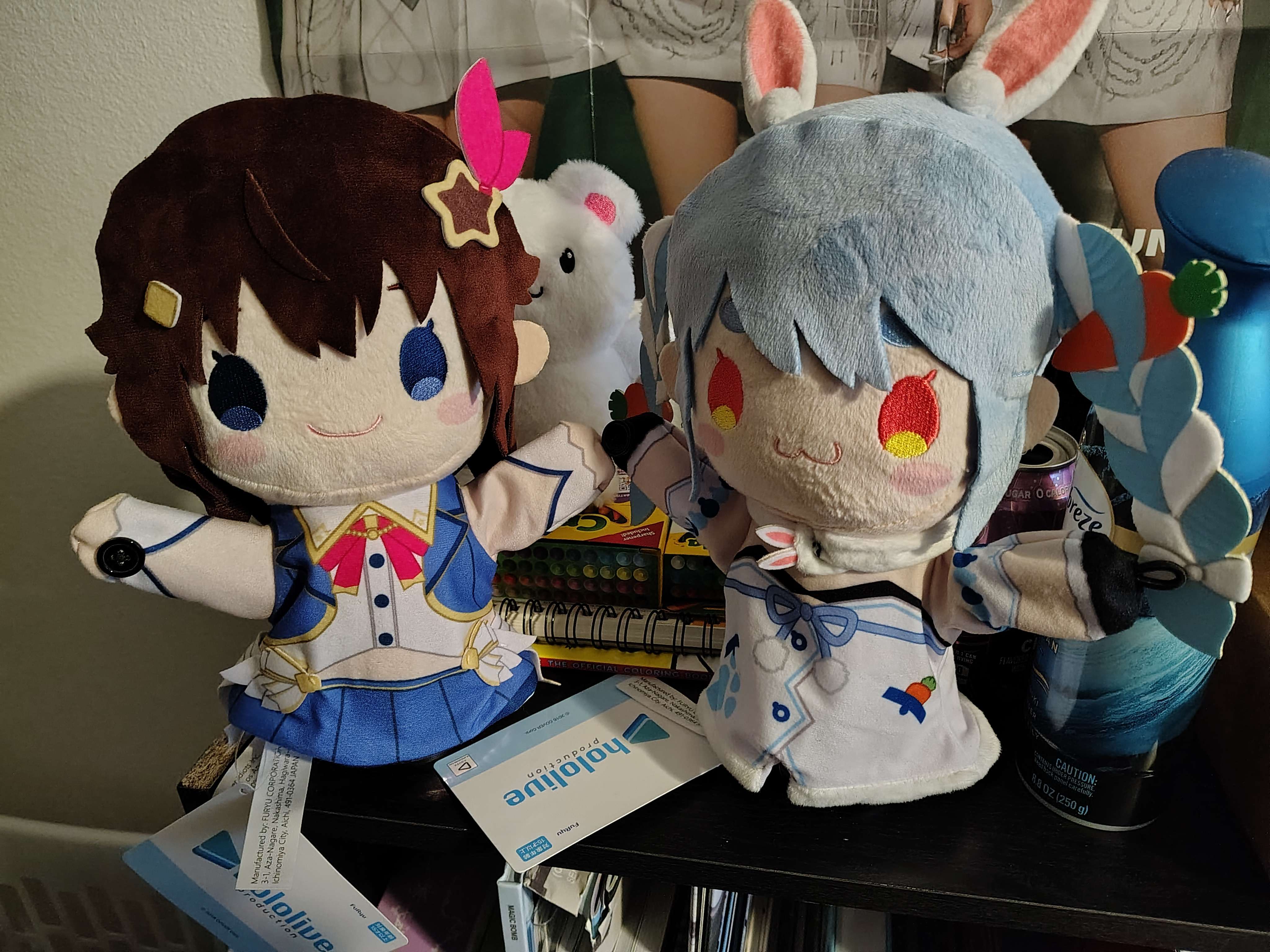 uh, uh.... hm. hololive. nah, im playing. i should've said it like this: hololive! i love hololive, i got into it at some point last month and it was very much worth it, i feel i found it at the right time. im fairly new to it so i don't know that much history / info but im having a blast. my top 4 at the moment is: pekora, korone, vivi and fuwamoco. they're all adorable! pekora and korone are my oshis (i was surprised they used that term) because they're both very funny and unique. this video and this one are reasons why they're my oshis. i really love the both of them to bits, and i love their music too. i think korone is adorable too, her voice and her whole dog shtick resonates well with me and she's also genuinely fun to watch as a result. i also love how ruthless and out there pekora is, feels very comforting and kinda relatable as i feel me and her share a lot of the same traits. i even have a pekora hand plush! (i also have one of sora)